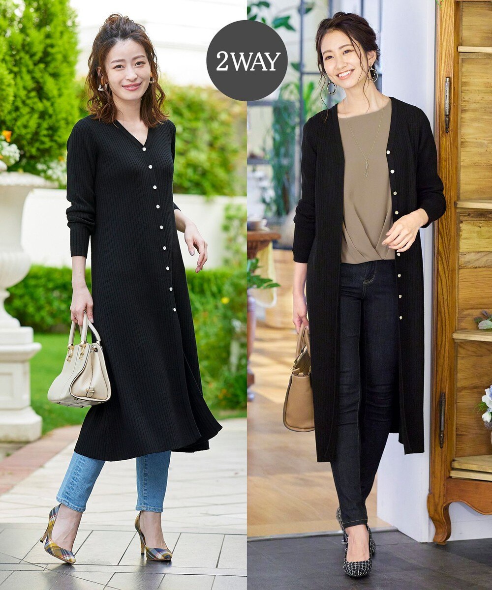 【洗える/2WAY】ロングリブニットカーディガン